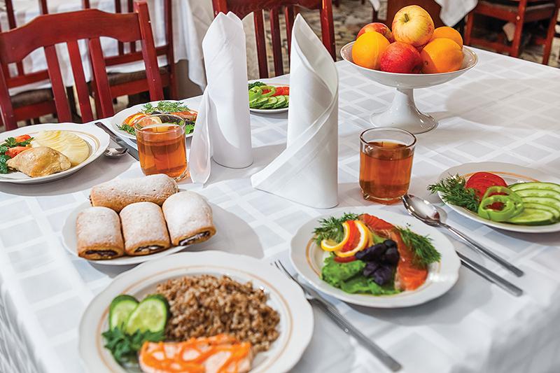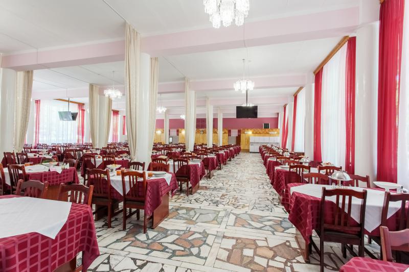 Питание в здравнице отличается сочетанием вкусных и полезных блюд из рыбы, мяса, овощей, запеканок, витаминных салатов, свежих соков, фруктов, кисломолочных продуктов и вкусной выпечки, обеспечивая гостям разнообразный и питательный рацион.