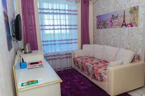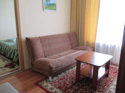 В номере: телевизор, телефон, холодильник, стенка-горка с посудой, радио, двуспальная кровать, 2 кресла- кровати.