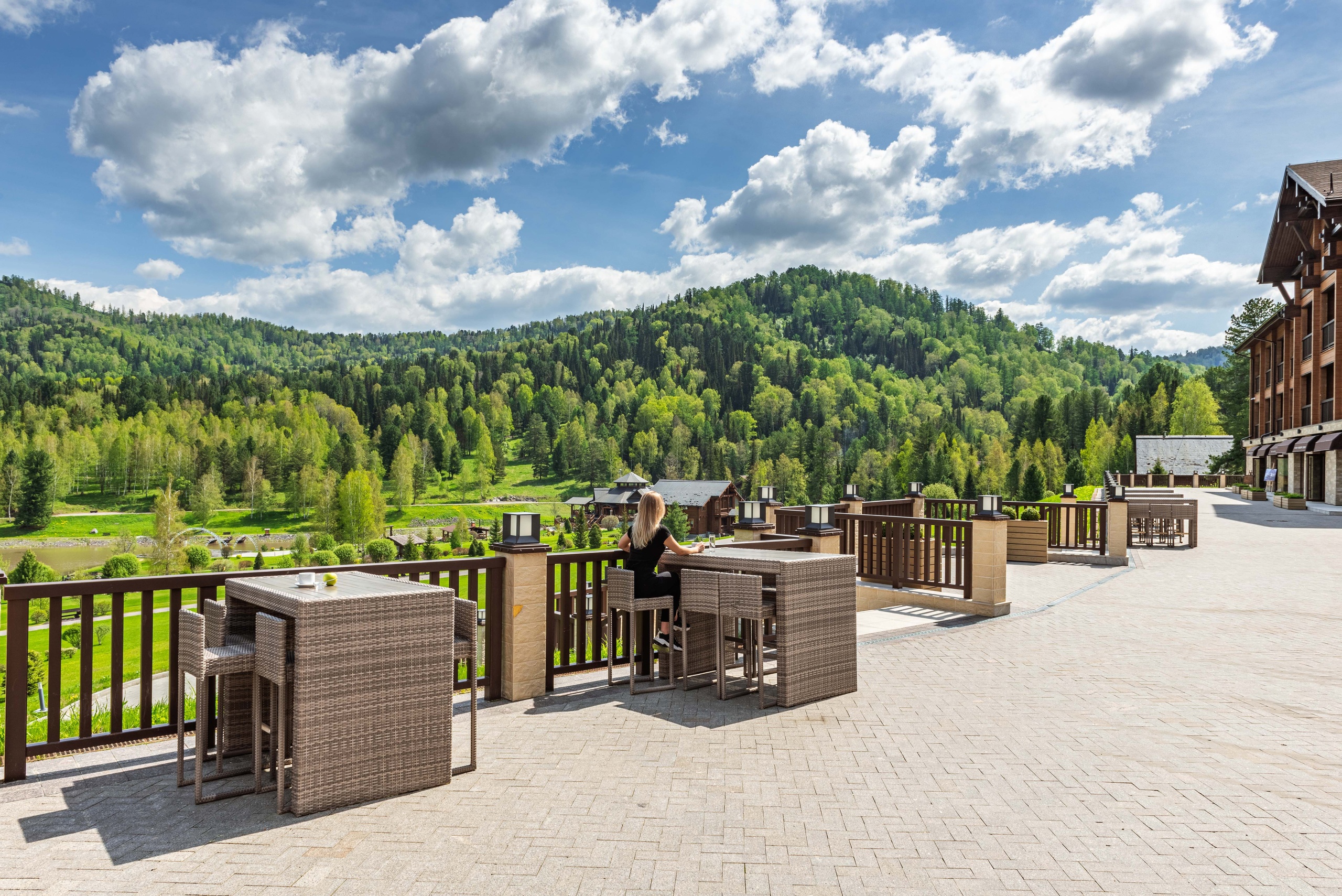 Живописная видовая терраса в теплое время года привлекает посетителей для наслаждения закатами, а два этажа ресторана создают комфортное пространство для проведения мероприятий в неповторимой атмосфере единения с природой Алтая.
