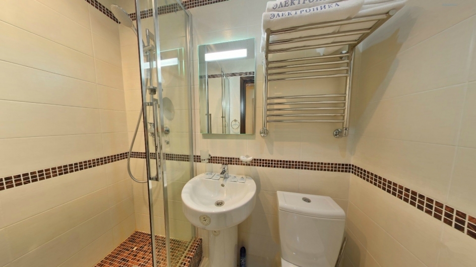 Оснащение номера: две односпальной кровати, кресло-кровать, фригобар, телевизор, сейф, фен, набор посуды: 2 стакана, ваза для фруктов, поднос, wi-fi