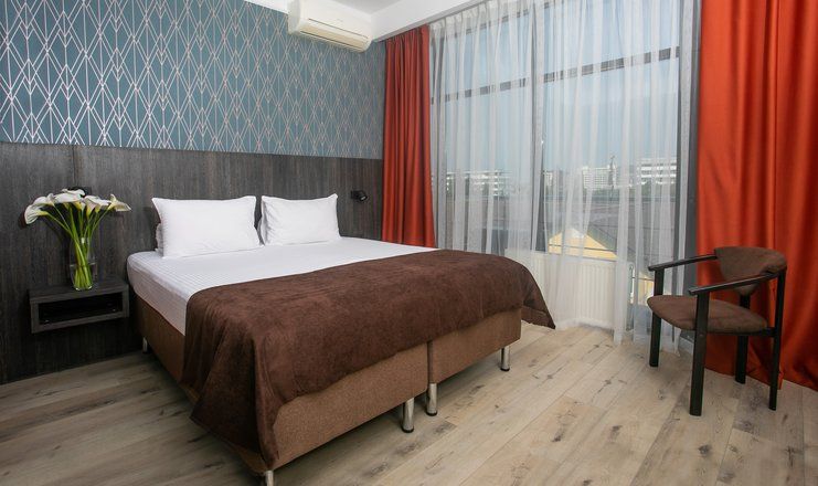 В номере: кровати односпальные /одна двуспальная кровать, прикроватные тумбочки, стол, стулья, шкаф, кресло, кондиционер, сейф, сплит-система, телевизор ЖК, телефон, холодильник, чайная станция и бутилированная вода