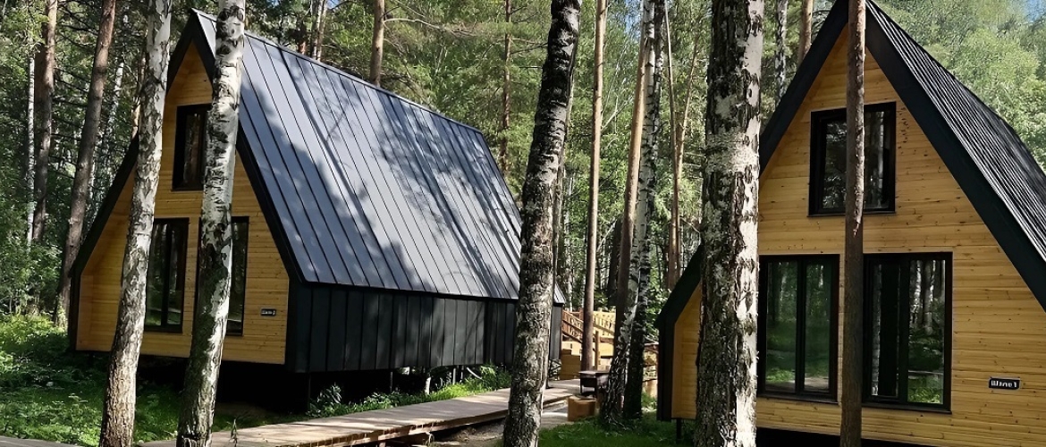 На территории площадью 50 га расположены комфортабельные дома со всеми удобствами: зеркальные дома, дизайнерские дома-сферы, полусферические дома с панорамным остеклением, большие двухэтажные шале, а также номера различной категории в отдельно стоящих корпусах.