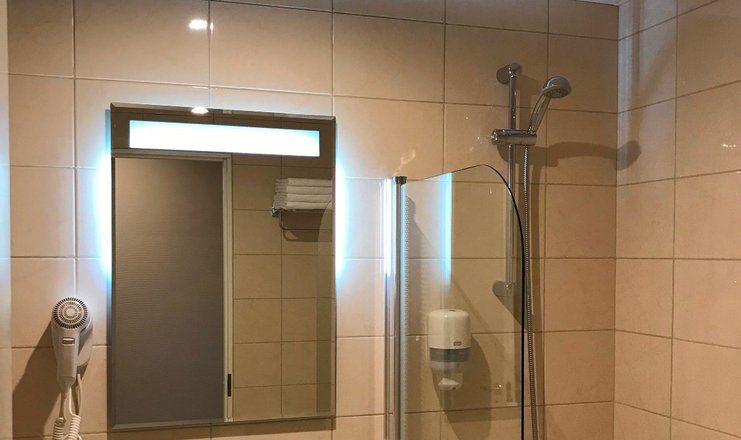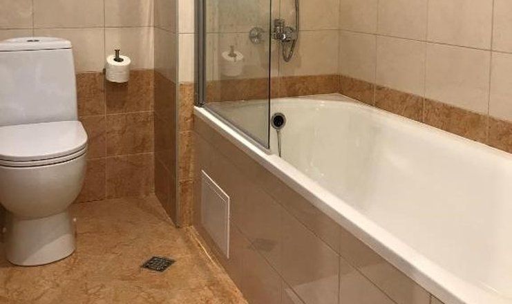 Санузел: ванна или душ, раковина, унитаз, фен, туалетные принадлежности