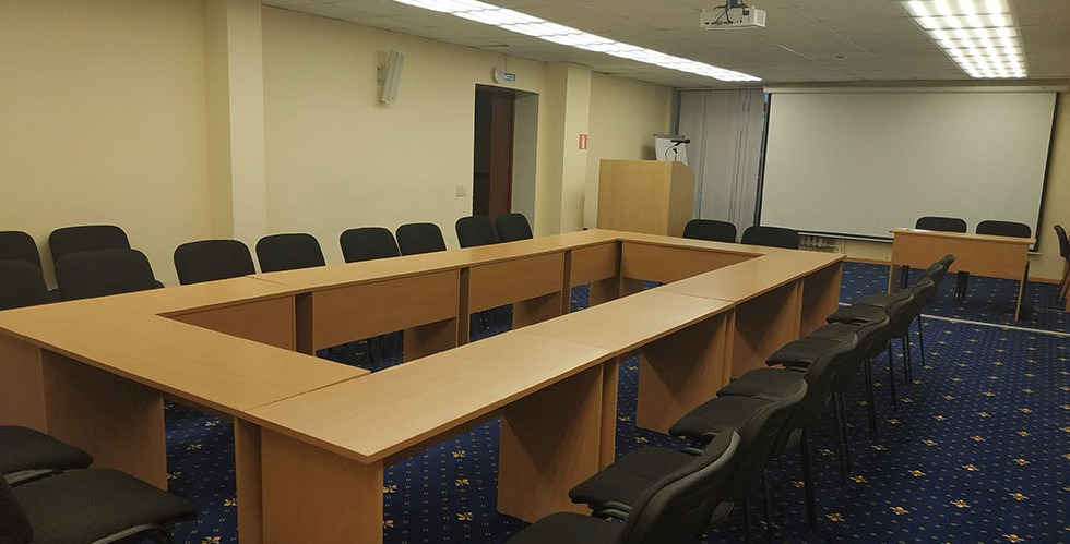 Конференц-зал подойдет для проведения различных мероприятий, семинаров и тренингов. Общая площадь зала – 80 м2. Вместимость – 80 человек.