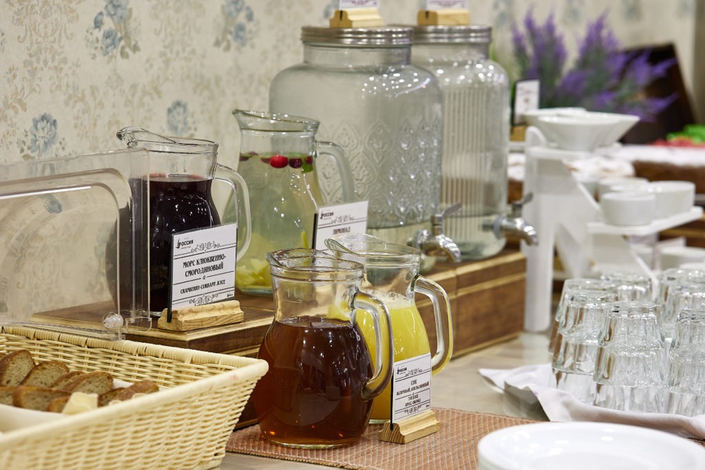 Завтрак проходит в банкетном зале «Империя» с 7:00 до 10:00 по будням и с 8:00 до 11:00 в выходные.
