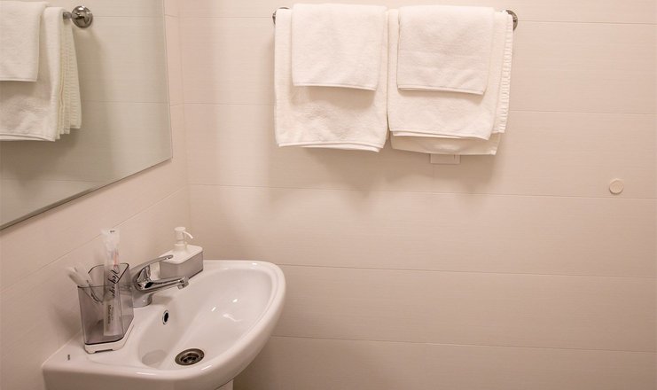 Санузел: с душевой кабиной, тапочки, туалетные принадлежности