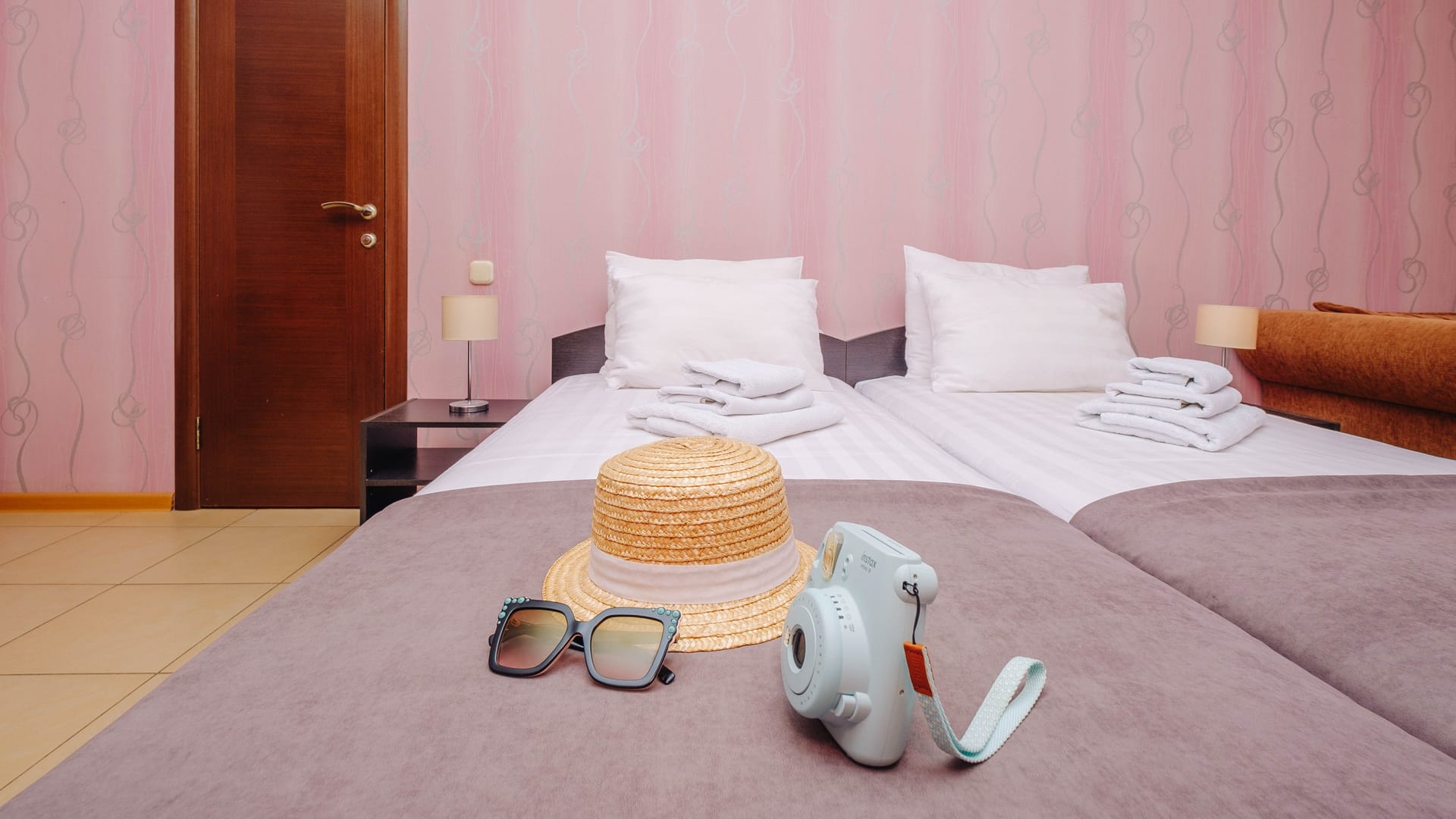 В номере: две односпальные кровати, прикроватные тумбы, стол, стулья, диван или кресло-кровать, шкаф, холодильник, плоский телевизор, кондиционер, чайник, утюг (на этаже)