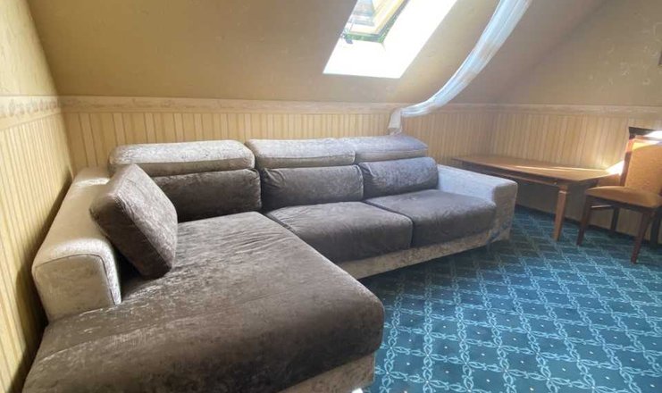 В номере: диван, зеркало, кровать двуспальная, прикроватные тумбочки, стол, стулья, кондиционер, мини-холодильник, сейф, телевизор ЖК, телефон