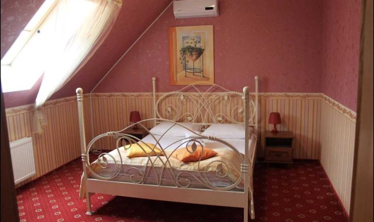 В номере: кровать двуспальная, прикроватные тумбочки, стол, стулья, шкаф, кондиционер, мини-холодильник, сейф, телевизор ЖК