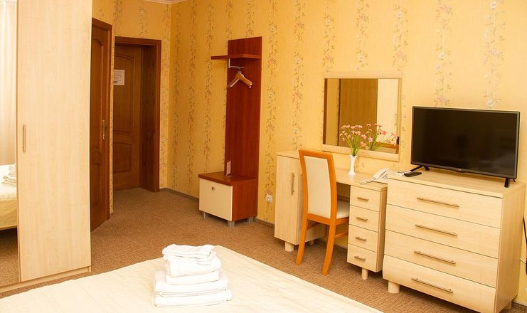 В номере: кровати односпальные /одна двуспальная кровать, прикроватные тумбочки, стол, стулья, шкаф, вентилятор, мини-холодильник, сейф, телевизор ЖК