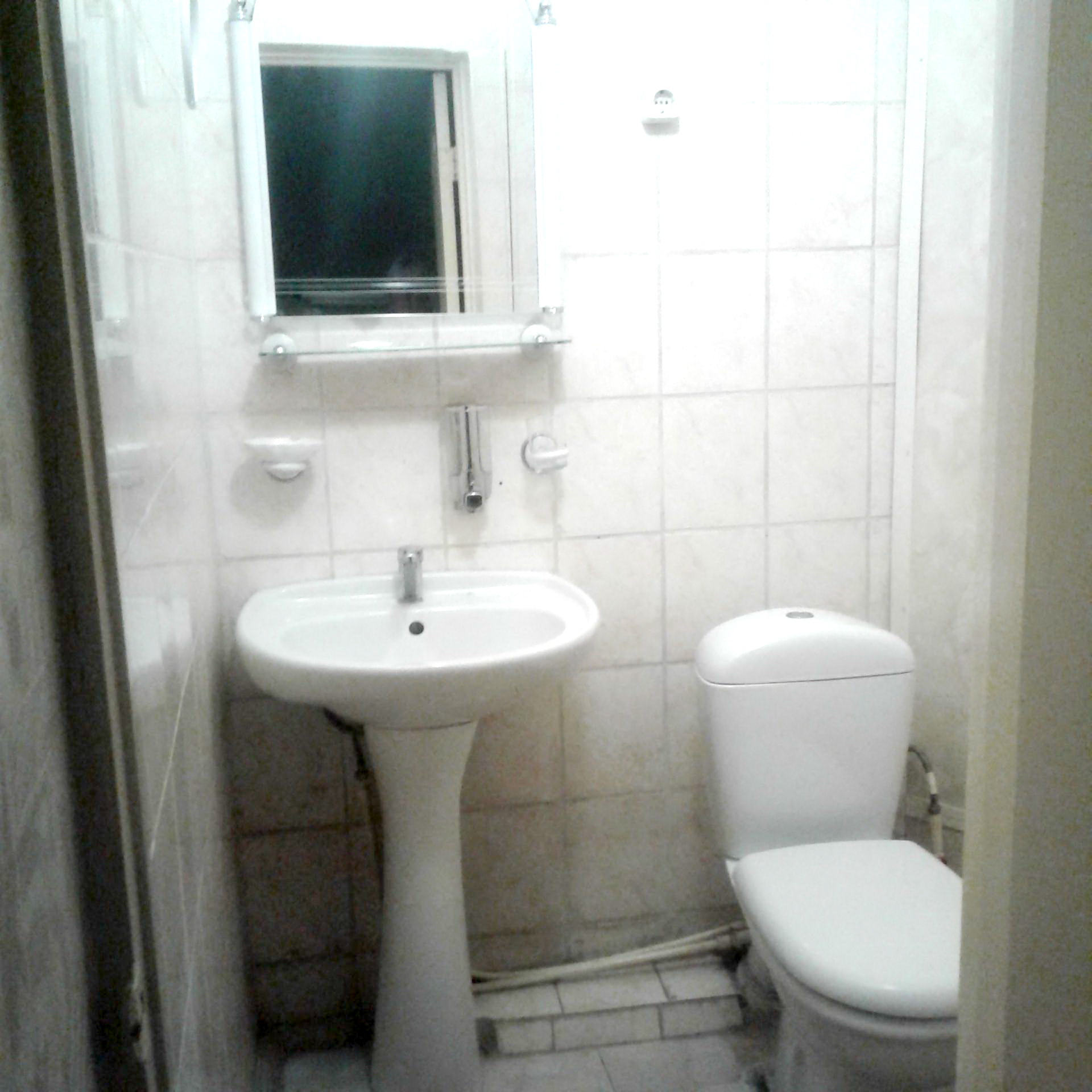 Санузел: душ, раковина, унитаз на блок
