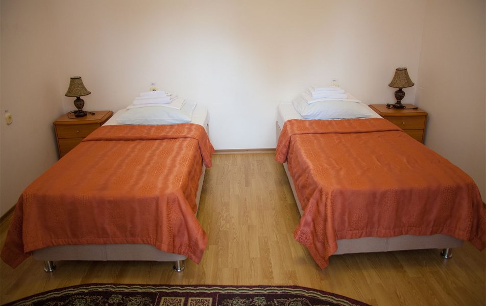 В номере: вешалка, зеркало, кресло, диван, кровати односпальные /одна двуспальная кровать, прикроватные тумбочки, стол, столик журнальный, шкаф, телевизор, телефон, холодильник, чайный набор посуды, электрочайник