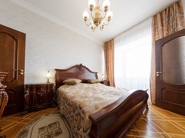 В номере: 2 комнаты, 2 кровати, диван, 2 кресла, тумба прикроватная, тумба TV, журнальный столик, стол туалетный с зеркалом, платяной и встроенный шкафы, обеденный гарнитур, рабочее место, телевизор, кондиционер, холодильник, телефон