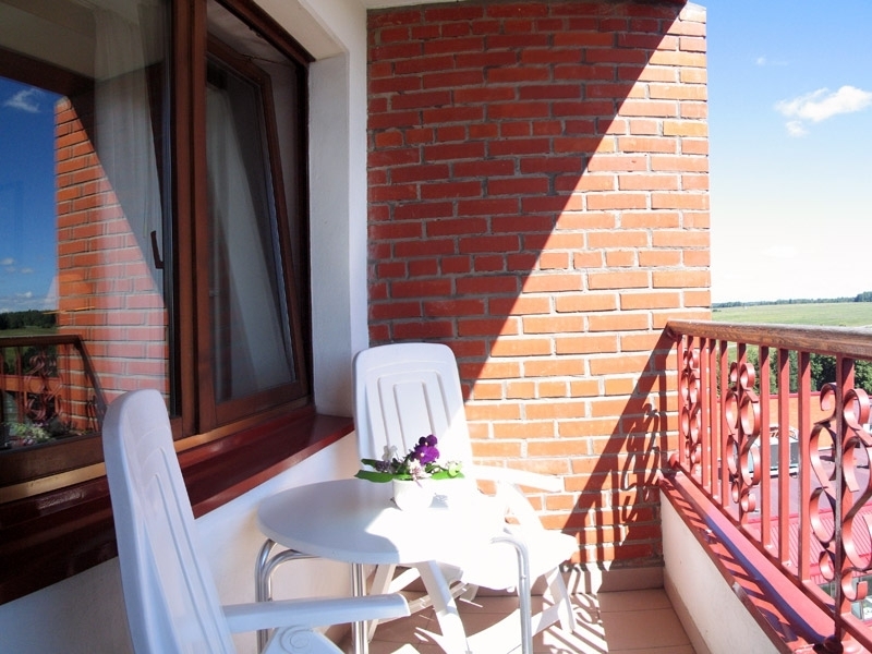 В номере: душ, туалет, фен, ТВ, кондиционер, телефон, холодильник, набор посуды, электрочайник, двуспальная кровать, мягкая мебель, балкон. Номера расположены на 2-ом этаже.