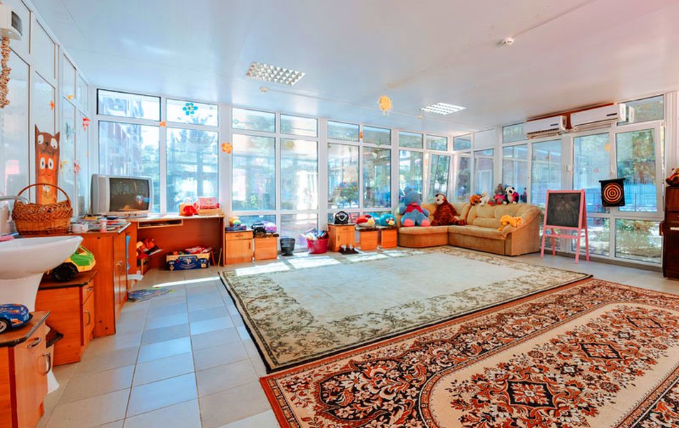 Детям : игровая комната, городок-лабиринт, зал детских игровых аттракционов, детский бассейн.